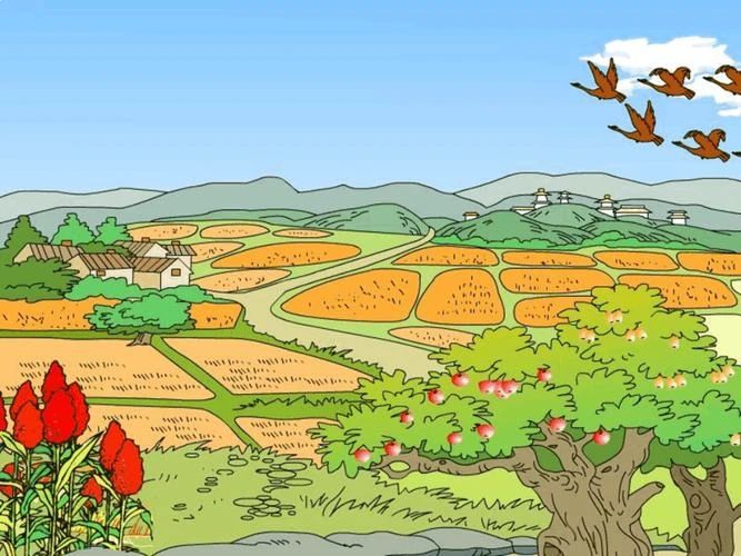 我来到田野里,看到金黄色的稻田,就像一片金色的海洋。农民伯伯们弯着腰,拿着镰刀在割稻子,他们的脸上都是笑容。我也想帮忙,可是我太小了。